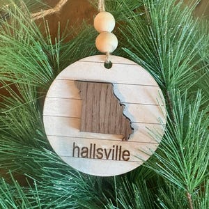 Show your Missouri pride this holiday season with a beautifully personalized state ornament! Crafted from rich walnut wood, this ornament showcases the state of Missouri, with a laser-cut basswood outline and zip code for a stunning two-tone finish. Each ornament is truly unique, with natural wood variations that add to its charm.